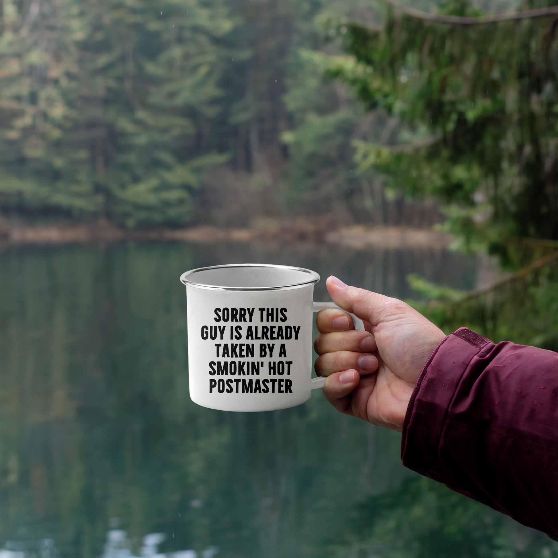 Funny Postmaster Gifts for Men, Sorry This Guy Is Already Taken Camping Mug for Father's Day, Enamel Finish with Permanent Printing