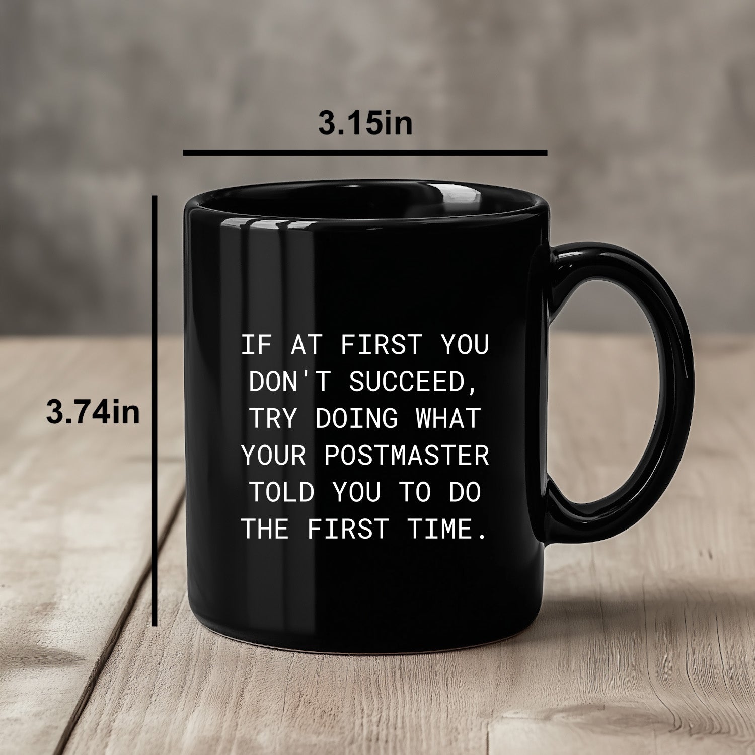 The Postmaster Black Coffee Mug is an excellent option! This ceramic mug features a witty quote that anyone who's ever taken instructions from a Postmaster can relate to. It reads, "If At First You Don't Succeed, Try Doing What Your Postmaster Told You To Do The First Time." It's a humorous reminder that sometimes following directions is the best solution.