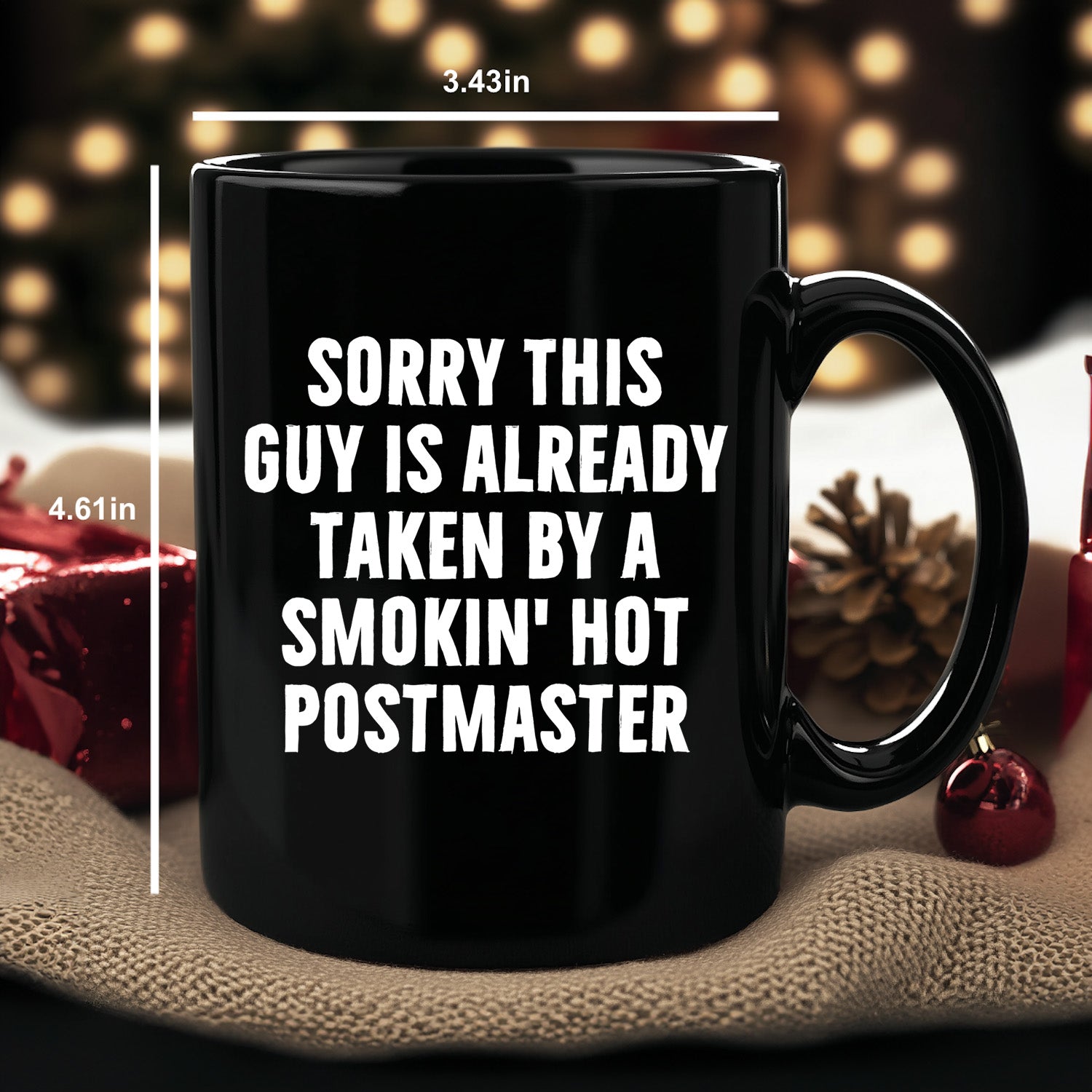 - Make a statement with this 'Sorry This Guy Is Already Taken By A Smokin' Hot Postmaster' black coffee mug, perfect for Father's Day gifts for the special postmaster in your life, featuring a unique design that showcases their profession.