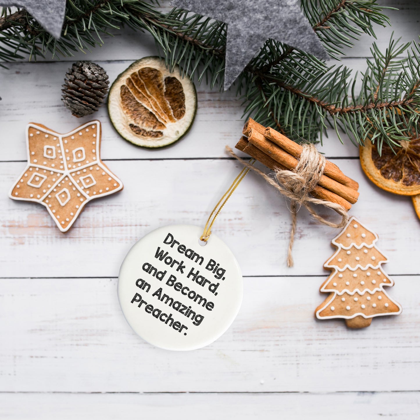 - Whether you're shopping for Men, Women, or Family, this ornament is sure to bring a smile to their face and inspire them to 'Dream Big, Work Hard, And Become An Amazing Preacher.'