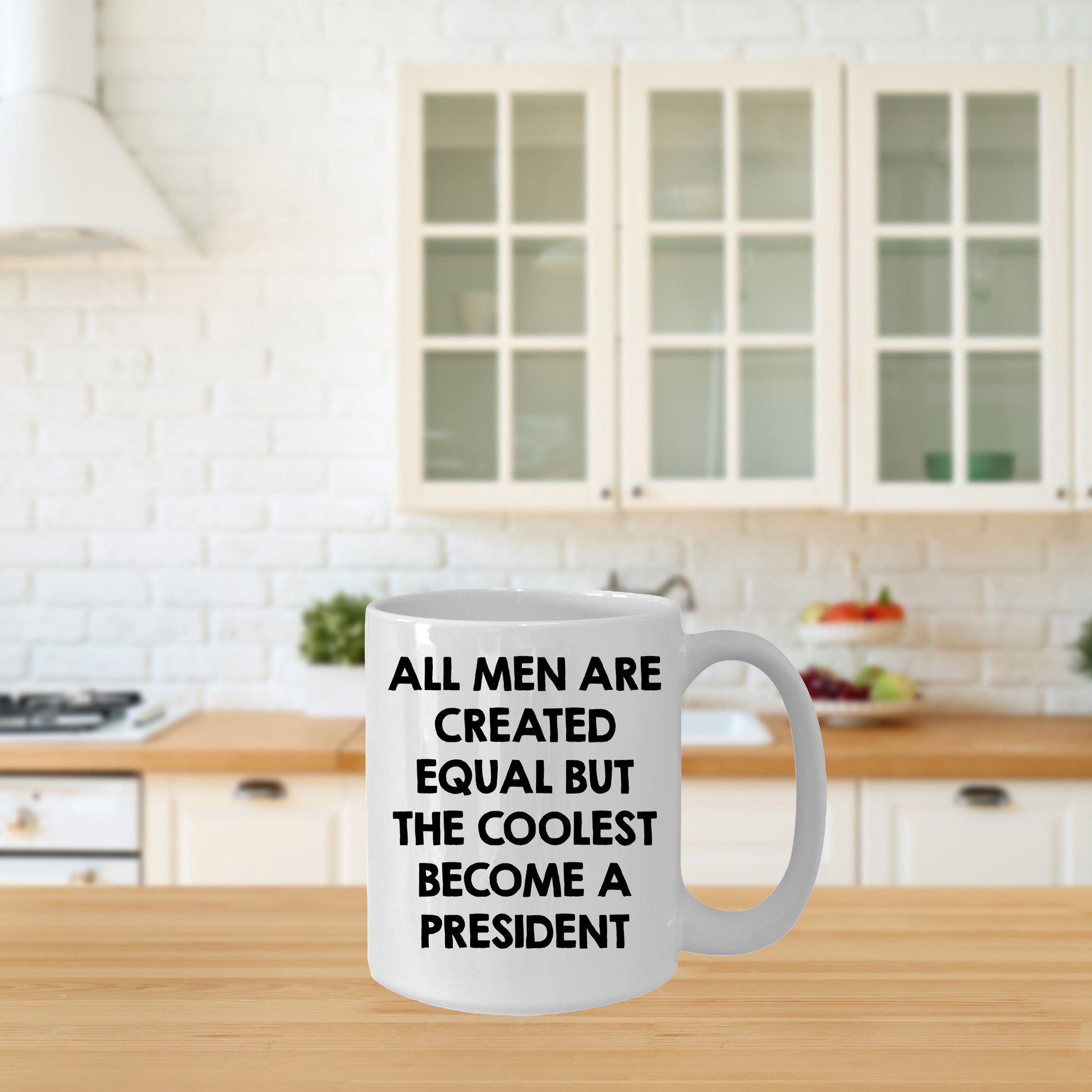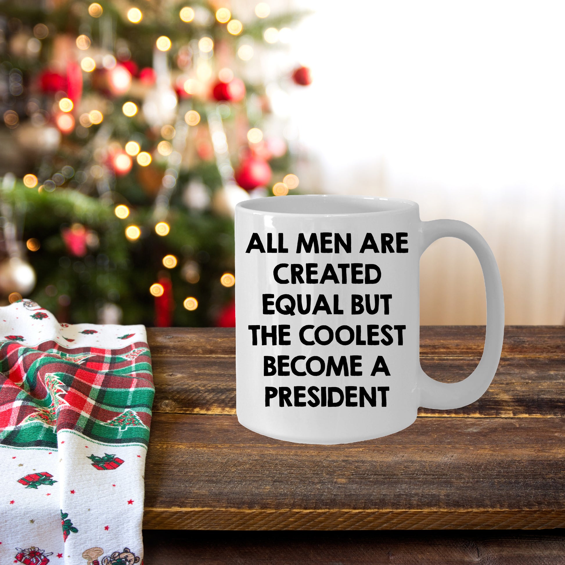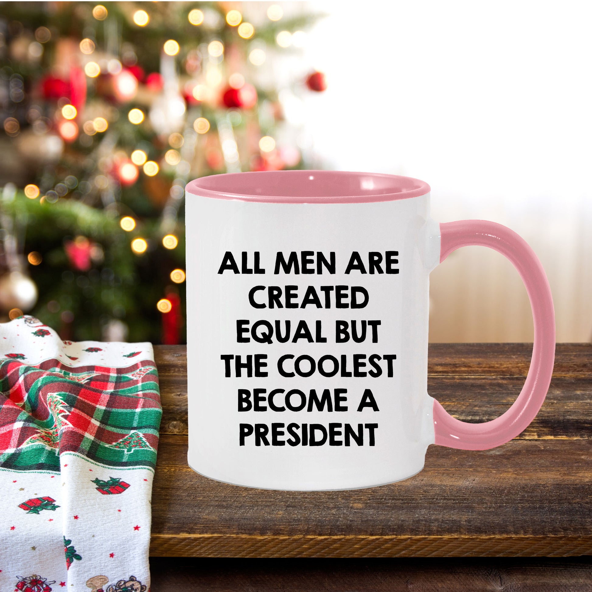 Funny President Quote White Coffee Mug Gifts for Men from Family Friends Coworkers - All Men Are Created Equal But The Coolest Become A President Two-toned Color Mug