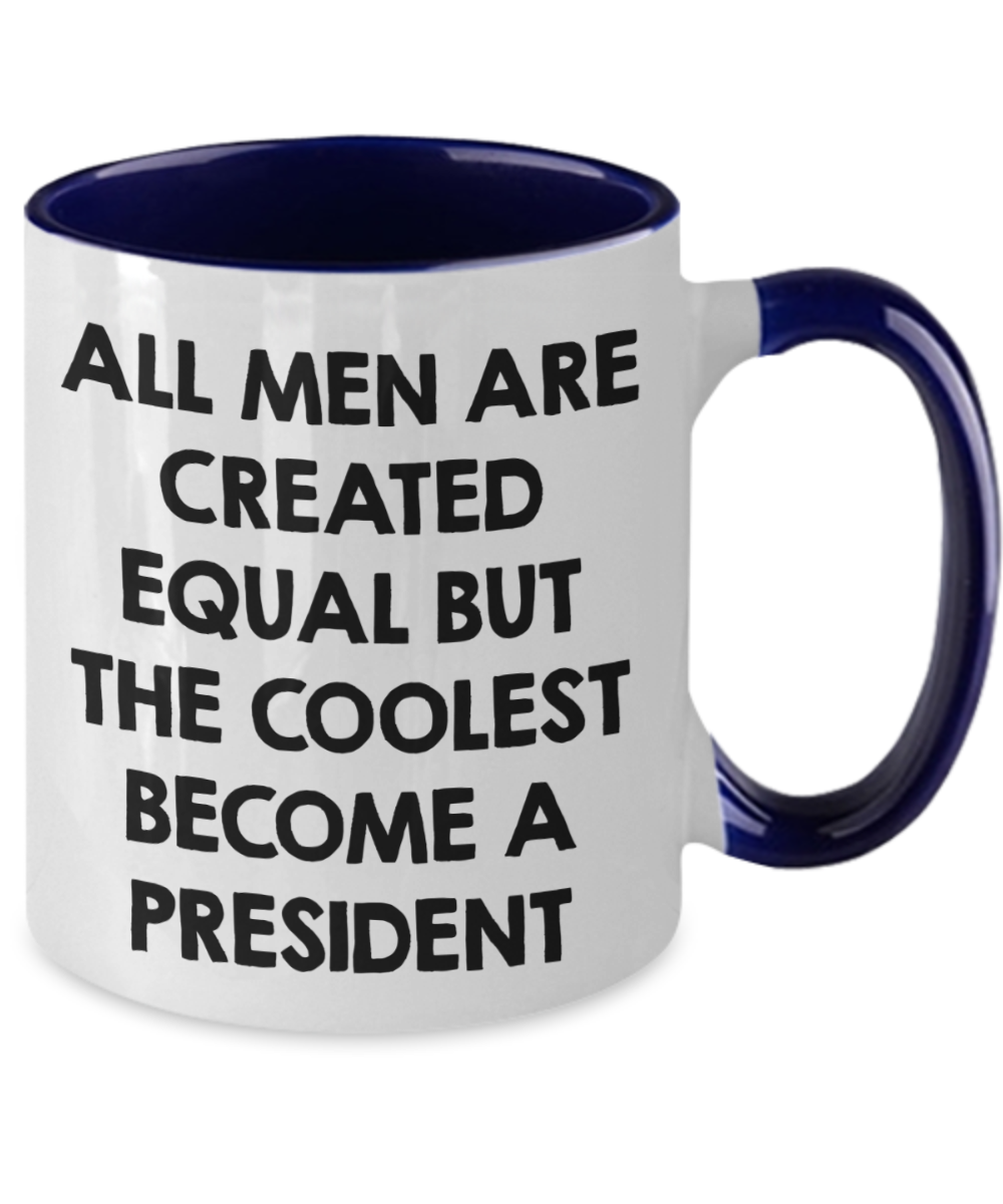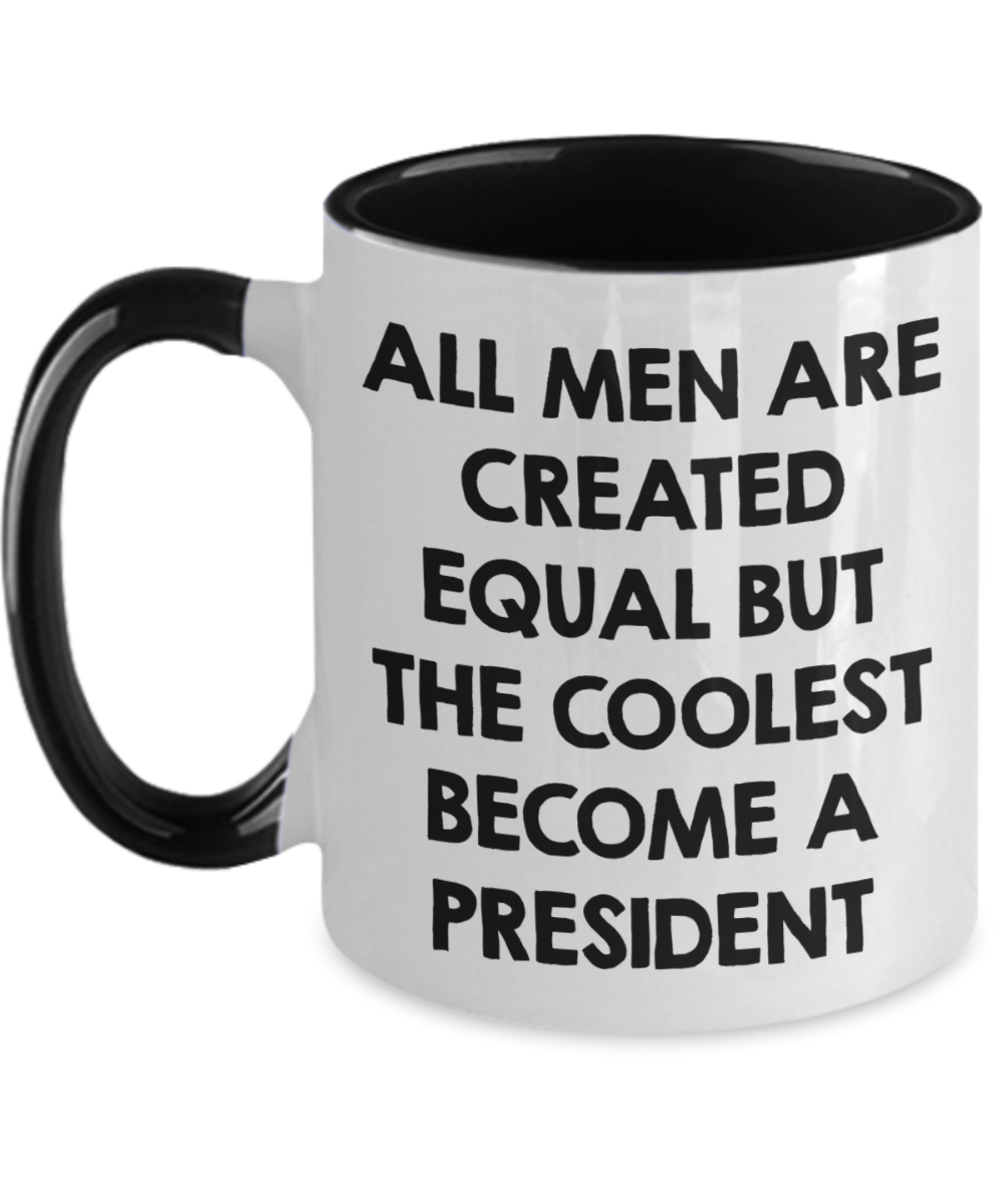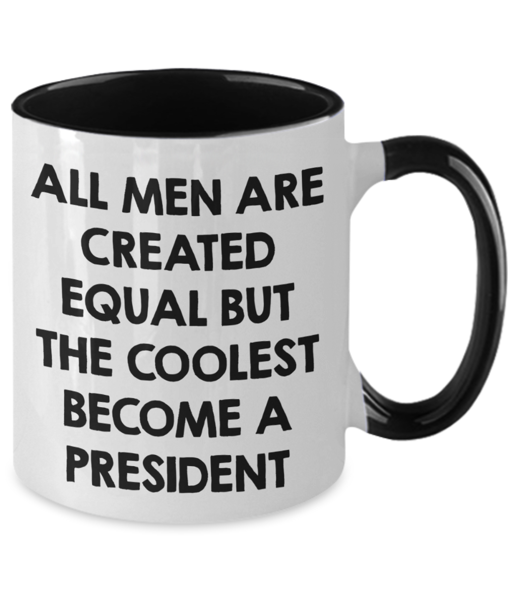 Funny President Quote White Coffee Mug Gifts for Men from Family Friends Coworkers - All Men Are Created Equal But The Coolest Become A President Two-toned Color Mug