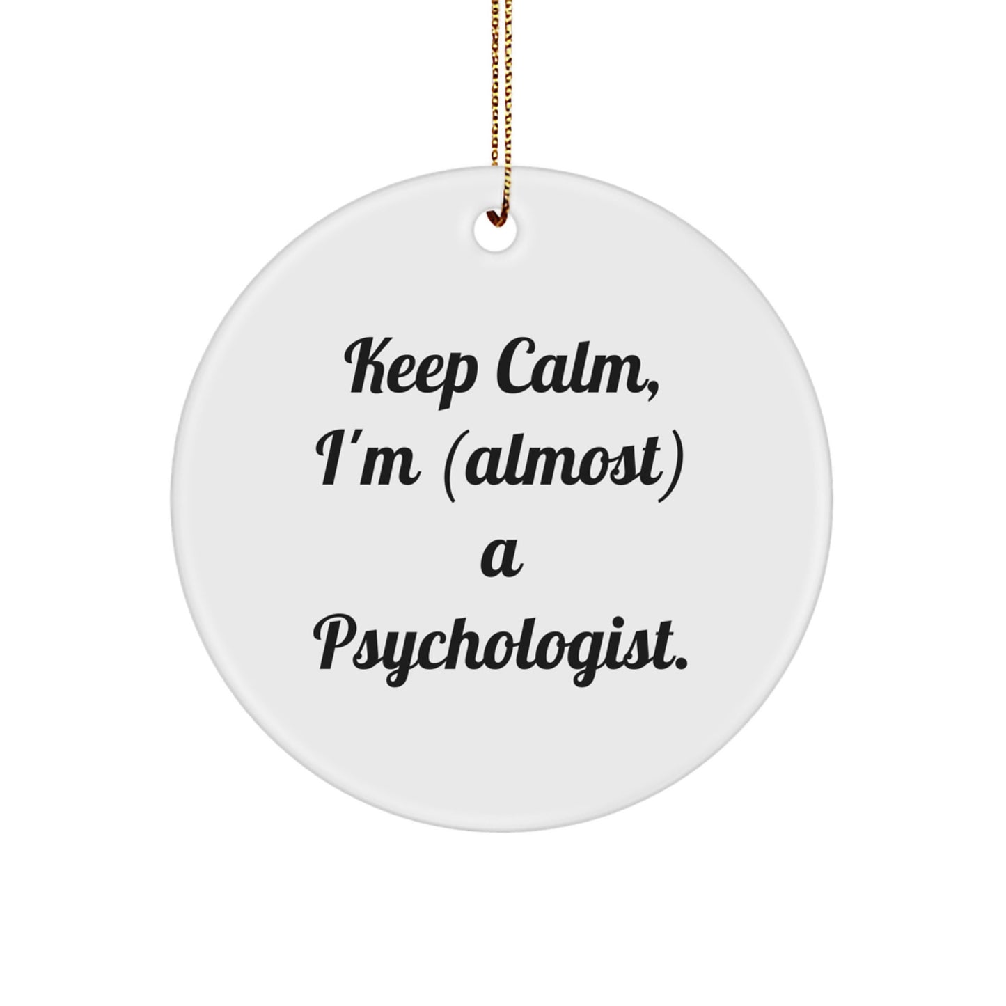 - This funny quote, 'Keep Calm, I'm (almost) A Psychologist.' Circle Ornament is a unique and thoughtful gift for any Psychologist, making it an ideal present for Christmas or any other occasion. The sturdy MDF material and high-gloss plastic finish ensure it will last for years to come, and the vibrant colors and edge-to-edge sublimation printing make it a one-of-a-kind gift.