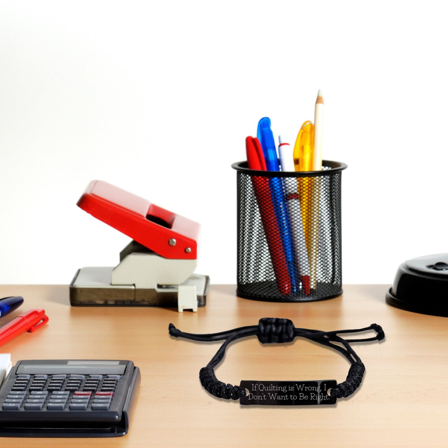 Funny Quilting Bracelet – If Quilting is Wrong… Quote – Black Braided Leather Rope Wristband for Fabric Lovers