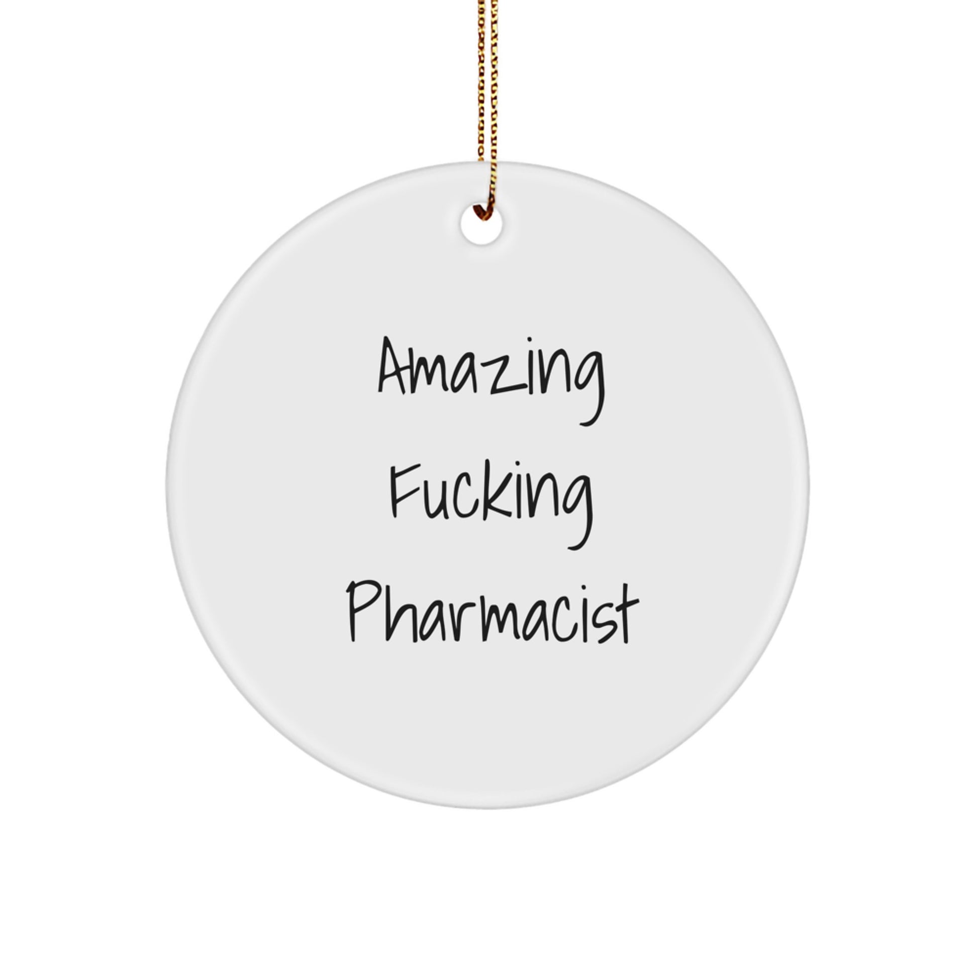 Funny Quote Pharmacist Gifts - 'Amazing F--king Pharmacist' Circle Ornament, Christmas Unique Presents for Men, Women, Family, Coworkers, Friends