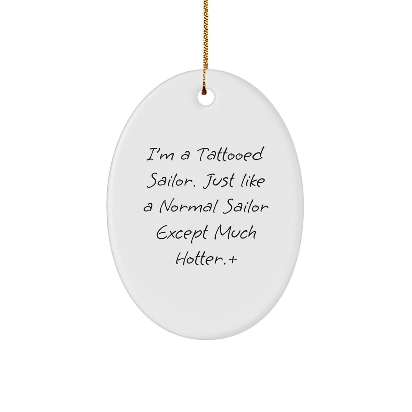 - Add a touch of humor to your Sailor-themed decor with this unique Oval Ornament featuring the quote 'I'm A Tattooed Sailor. Just Like A Normal Sailor Except Much Hotter.'