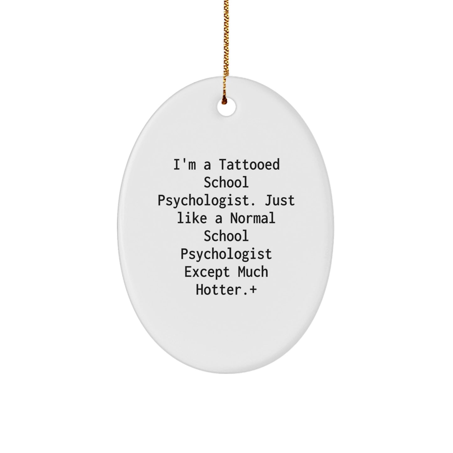 - This Oval Ornament is the ideal gift for any School Psychologist, making it a great choice for Christmas or any other occasion. The design is inspired by the hilarious quote 'I'm A Tattooed School Psychologist. Just Like A Normal School Psychologist Except Much Hotter.' and is sure to bring a smile to their face.