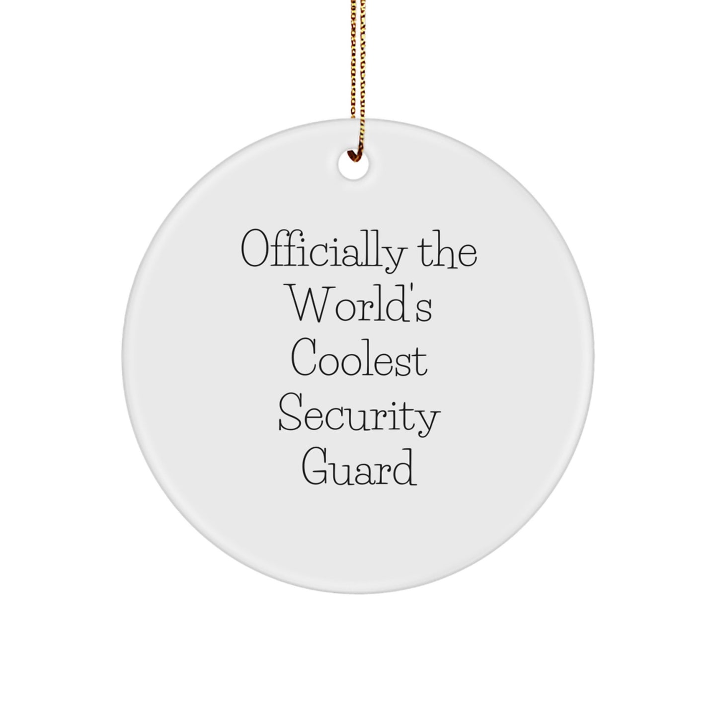 - This Circle Ornament is a great gift for Security Guards of all ages, and it's a unique and thoughtful way to show your appreciation for their hard work and dedication. Whether you're looking for a gift for a Security Guard friend, family member, or coworker, this 'Officially The World's Coolest Security Guard' Circle Ornament is the perfect choice.