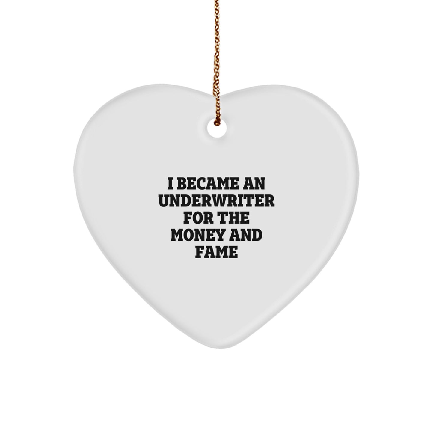 Funny Underwriter Gifts for Men - I Became An Underwriter For The Money And Fame, Heart Ornament for Christmas, Gifts from Friends, Gifts for Underwriter