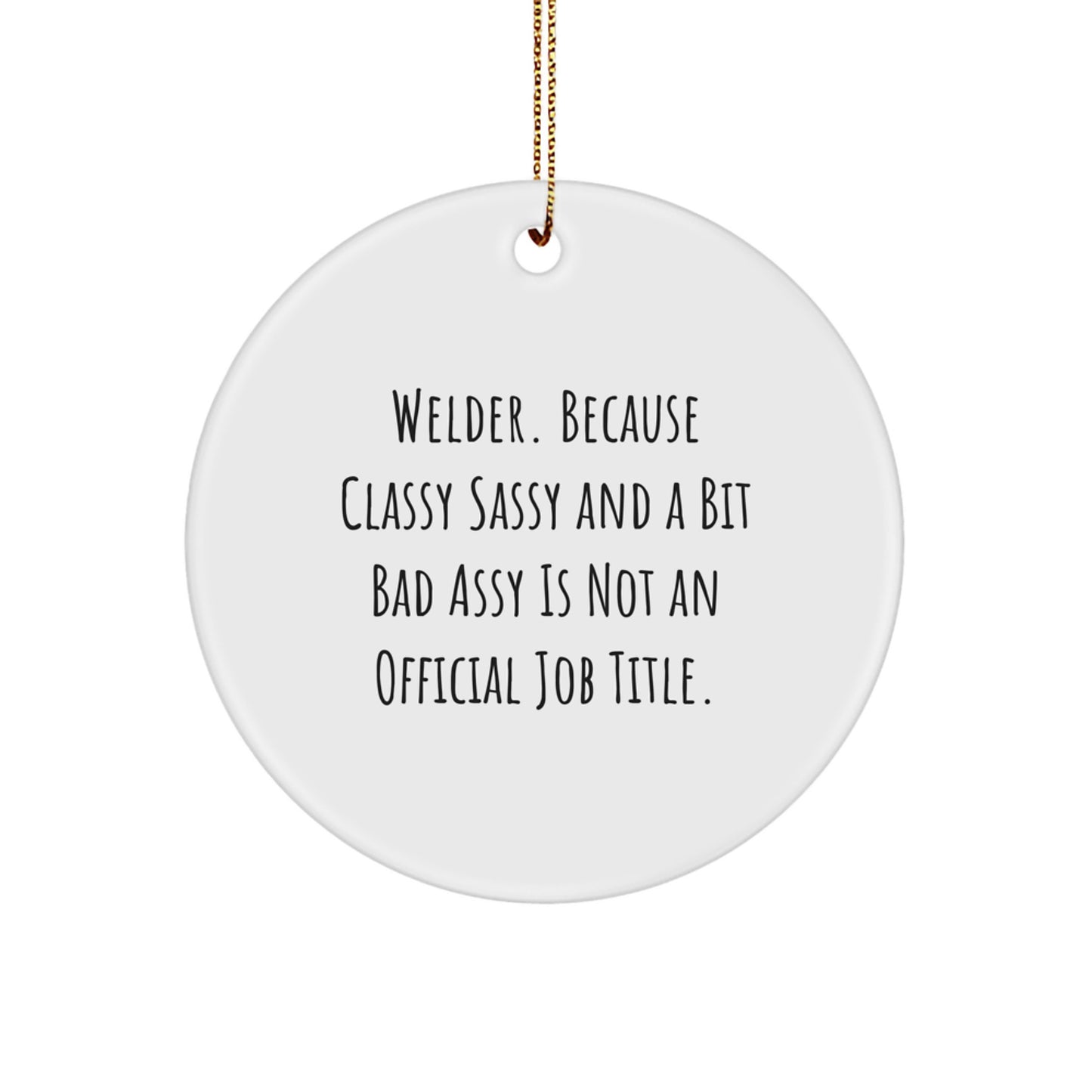- Our funny 'Welder. Because Classy Sassy And A Bit Fearlessy Is Not An Official Job Title.' Christmas circle ornament is the ideal gift for any welder enthusiast. Made from sturdy MDF with a high-gloss plastic finish, it's built to last and will add a touch of humor to their home or office.