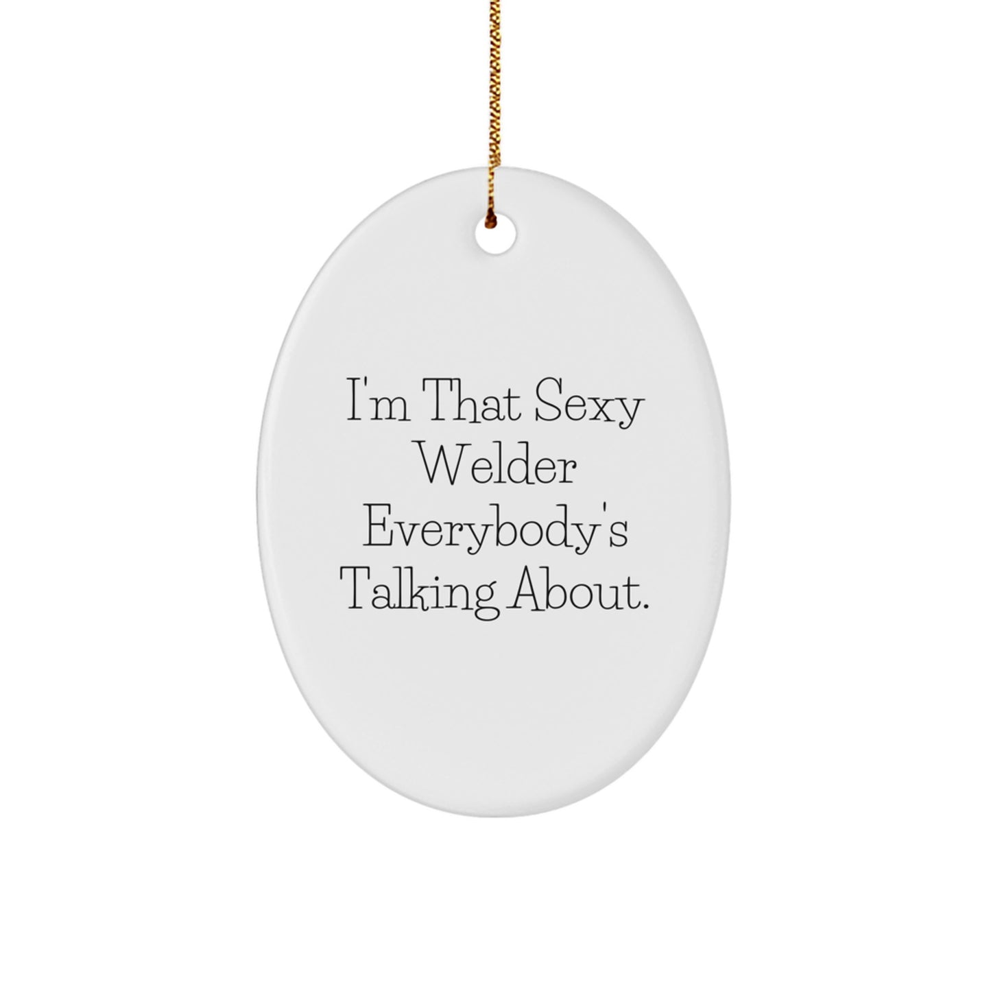 - Give the gift of laughter and fun with this funny I'm That Sexy Welder Everybody's Talking About Oval Ornament. Perfect for Welder friends, family, or coworkers, this decorative ornament is sure to bring a smile to their face.
