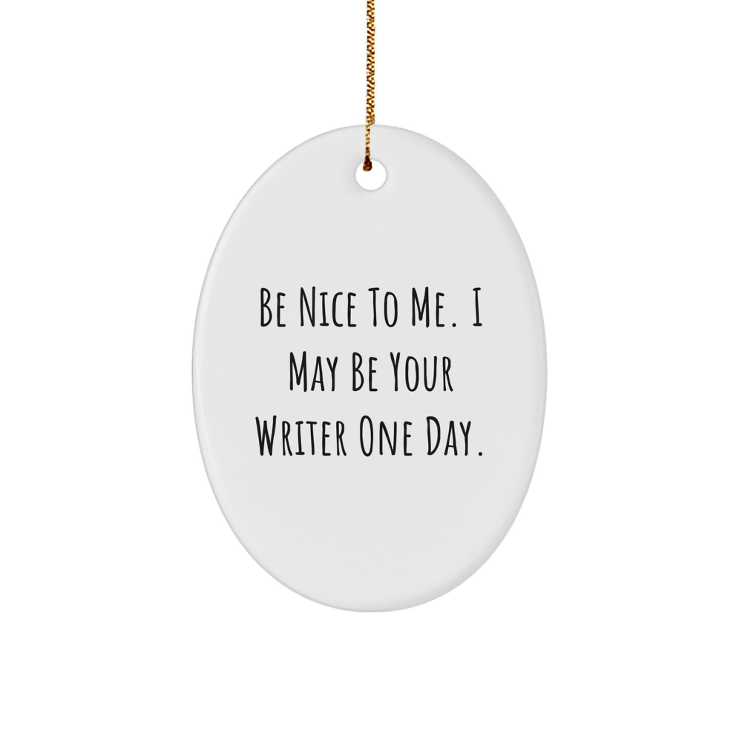 Funny Writer Gifts from Friends to Family for Christmas - Oval Ornament with Quote 'Be Nice To Me. I May Be Your Writer One Day.'