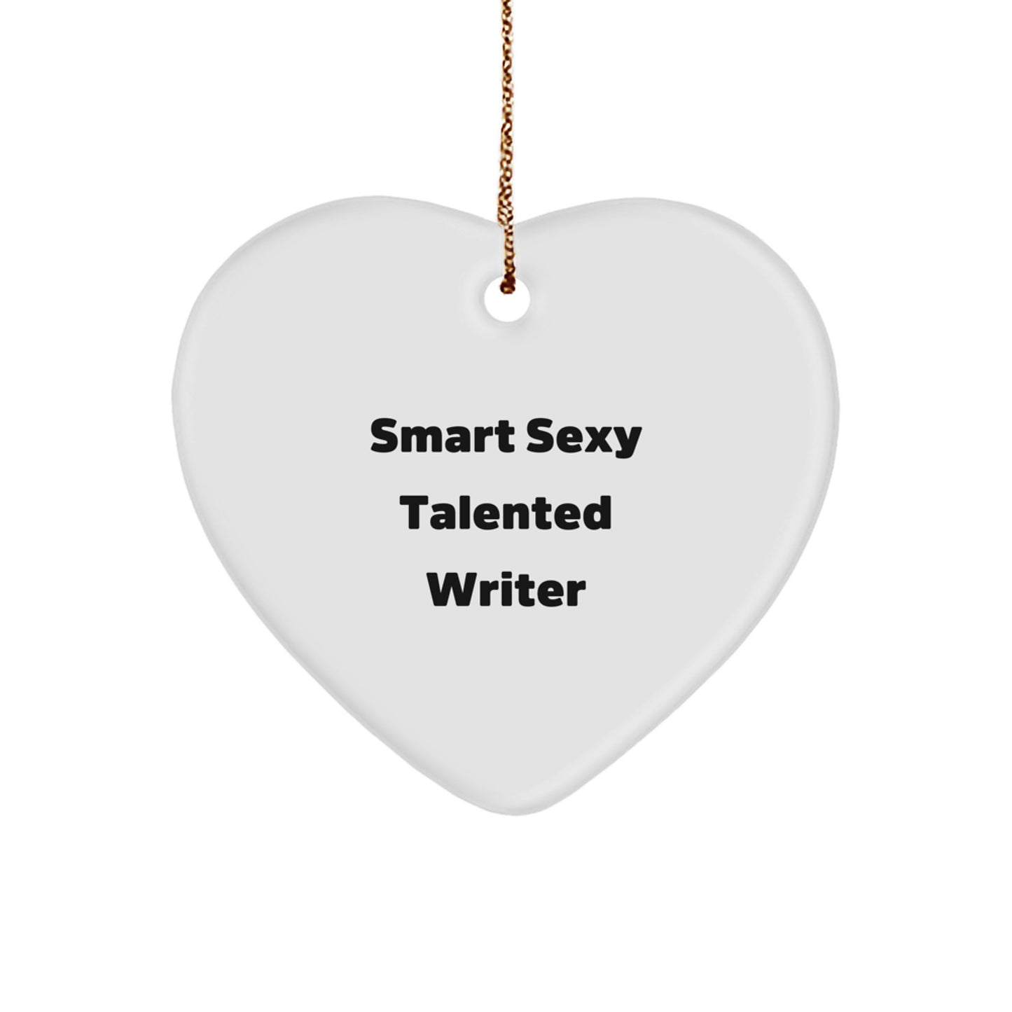 Funny Writer Gifts from Men to Writer Friends on Christmas - Smart Sexy Talented Writer Heart Ornament, White, 2.75