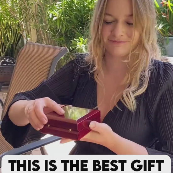 Your piece is lovingly packaged in a complimentary soft touch box for easy gifting. Elevate your presentation by upgrading to the mahogany style luxury box, which features a brilliant LED spotlight.