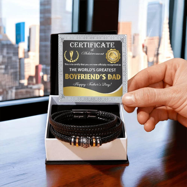 ššSurprise your boyfriend's Dad for Father's Day with this Braided Leather Bracelet and message card for the World's Greatest Boyfriend's Dad.