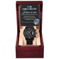 šAre you searching for the perfect gift for your father-in-law? This beautifulĀ Black Chronograph Watch is a handsome and durable gift with a heartfelt message card, "To the world's greatest Father-in-law, thank you for raising your son to be the man of my dreams. He is proud to be your son. I am blessed to be his wife and your daughter-in-law. We love you with all our hearts"