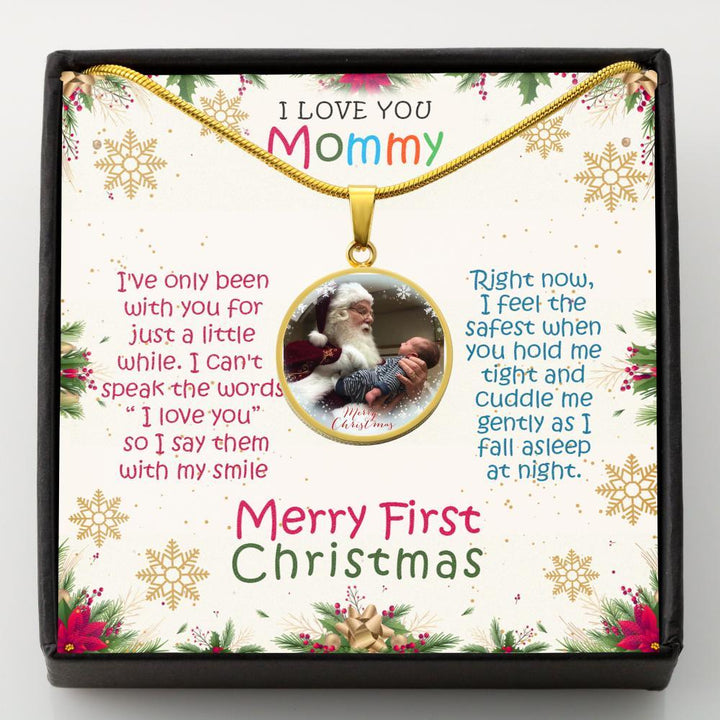 Celebrate Baby's first Christmas with this adorable pendant necklace. Upload your baby's first photo with Santa or a picture of the ultrasound.