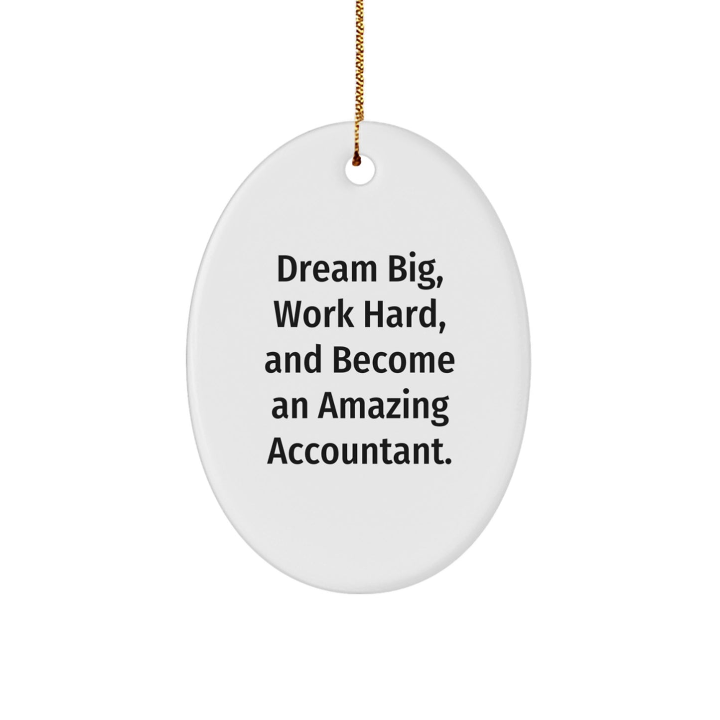 - Make a statement with this Oval Ornament, a thoughtful gift for the accountant in your life who embodies the quote 'Dream Big, Work Hard, And Become An Amazing Accountant.' - perfect for the home or office.