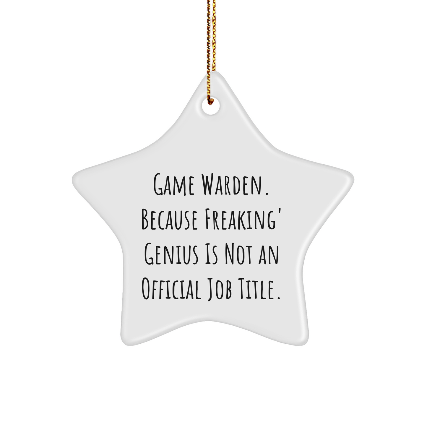 - Add a touch of humor to your Christmas decorations with this unique Star Ornament featuring the quote 'Game Warden. Because Freaking' genius Is Not An Official Job Title.' - a ideal gift for any Game Warden enthusiast!