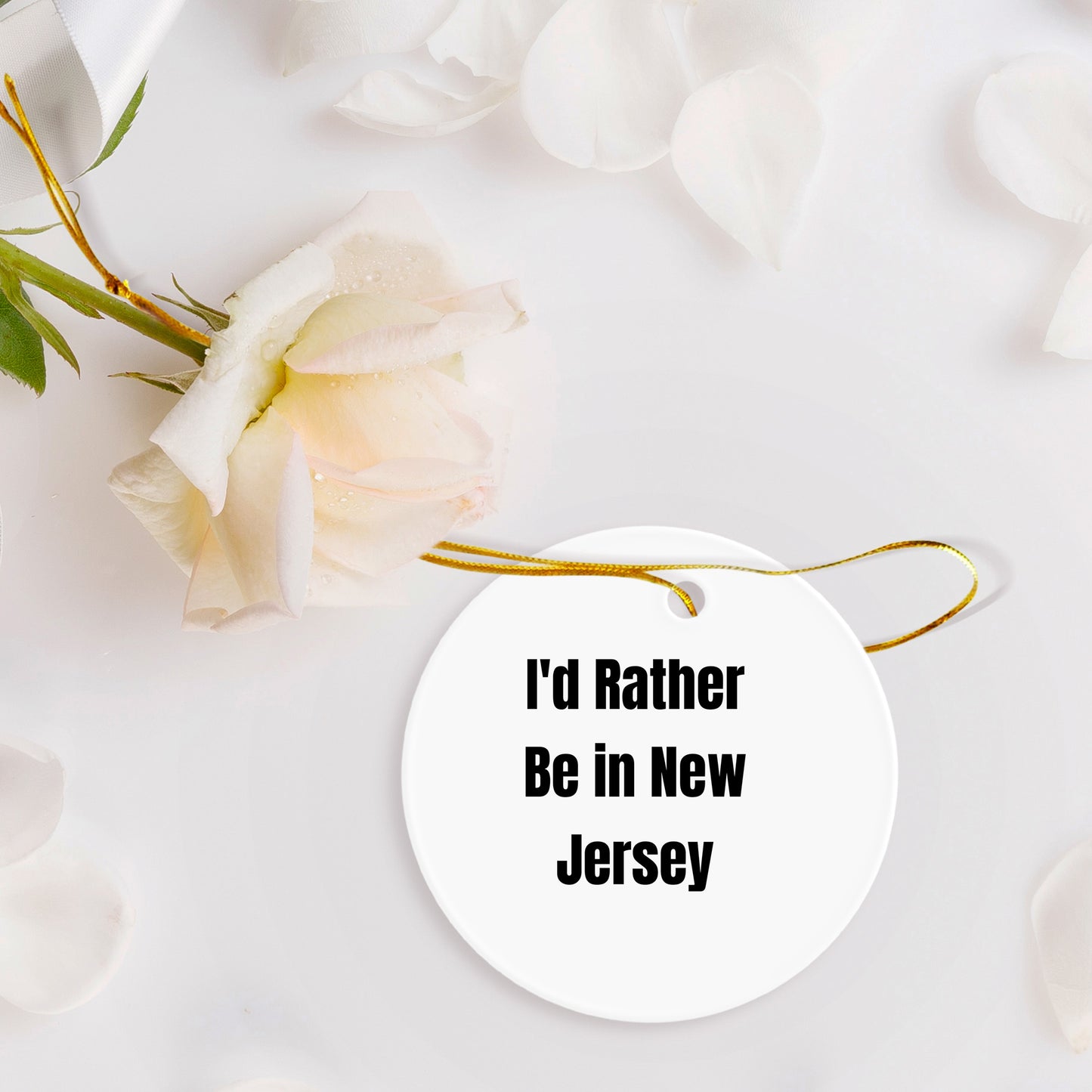 Make this Christmas one to remember with a thoughtful and unique gift from the heart. This 'I'd Rather Be In New Jersey' circle ornament is the perfect way to show your friends you care. Don't miss out and get ready to spread some holiday cheer!