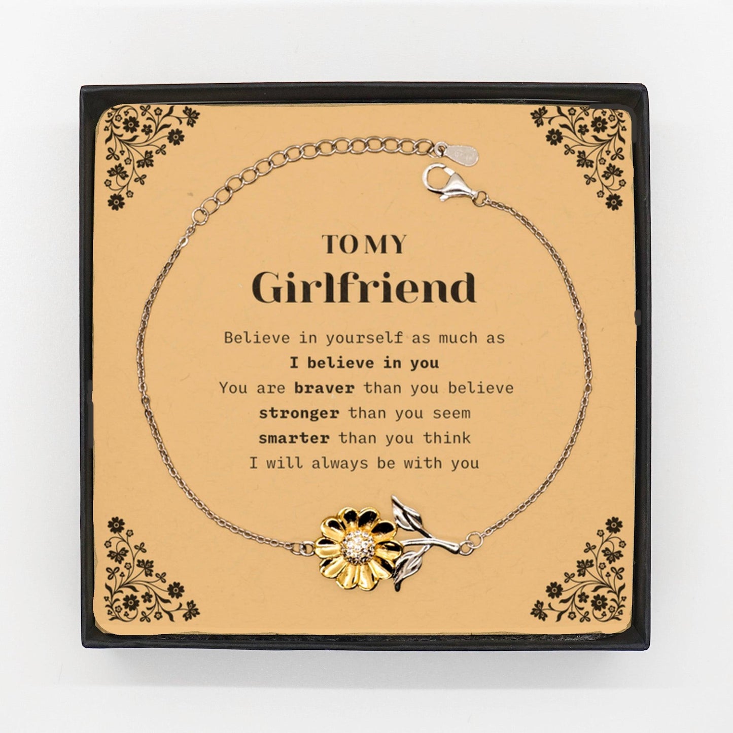 Girlfriend Sunflower Bracelet Gifts, To My Girlfriend You are braver than you believe, stronger than you seem, Inspirational Gifts For Girlfriend Card, Birthday, Christmas Gifts For Girlfriend Men Women