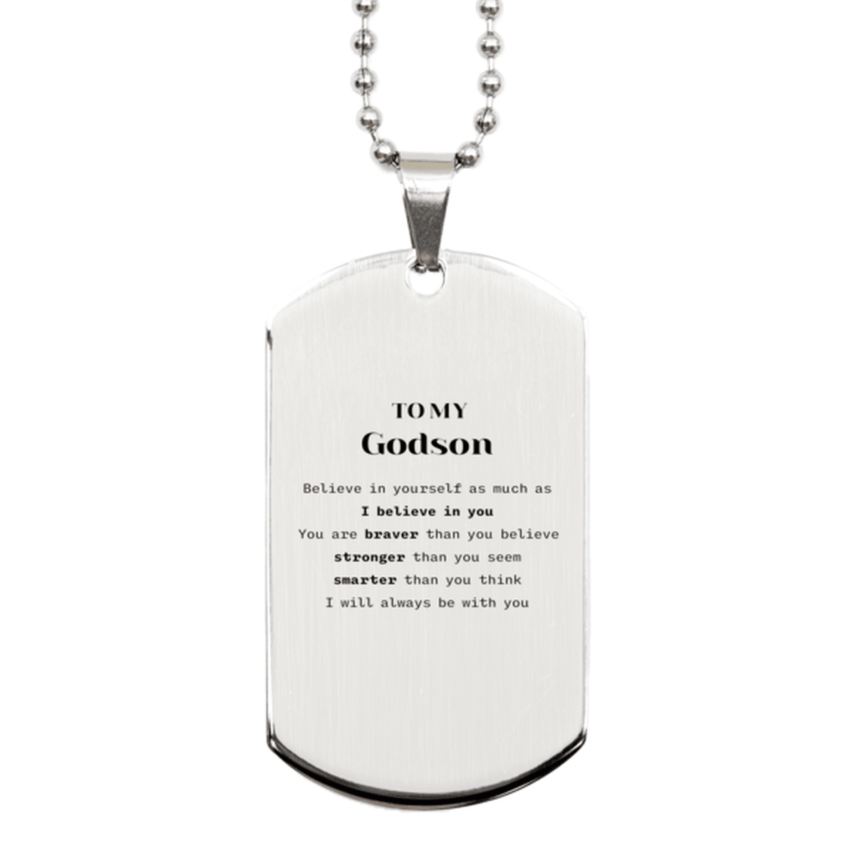 Godson Silver Dog Tag Gifts, To My Godson You are braver than you believe, stronger than you seem, Inspirational Gifts For Godson Engraved, Birthday, Christmas Gifts For Godson Men Women