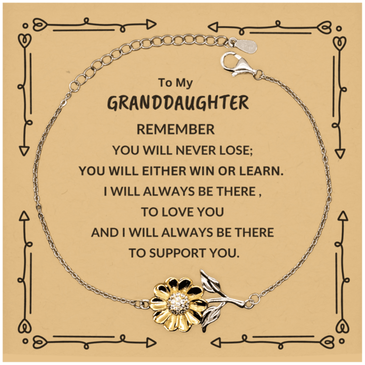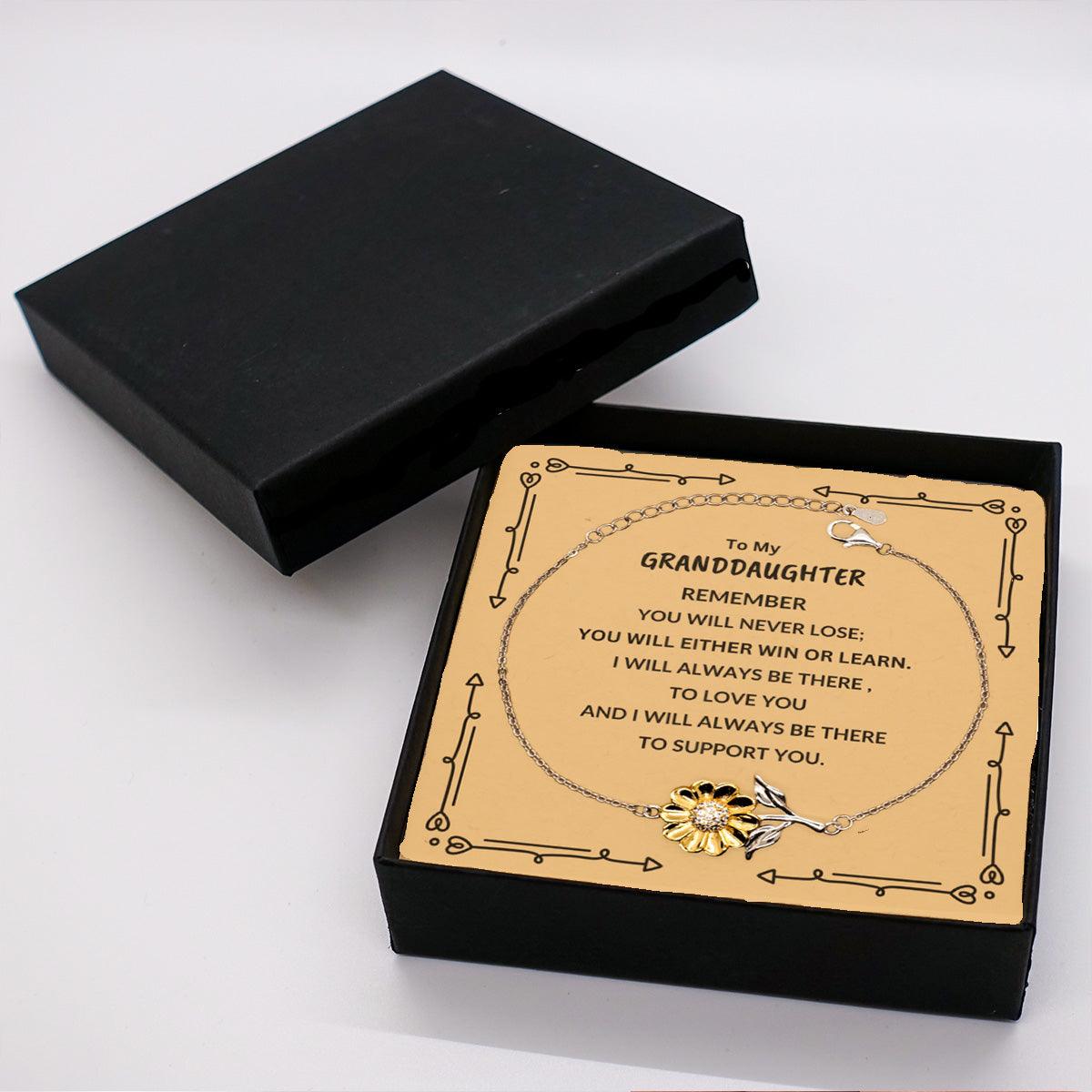 Granddaughter Sunflower Bracelet, Remember, You Will Never Lose. You Will Either Win or Learn Inspirational Bracelet for your Granddaughter, Birthday, Christmas Gifts Ideas, Heartfelt Gift