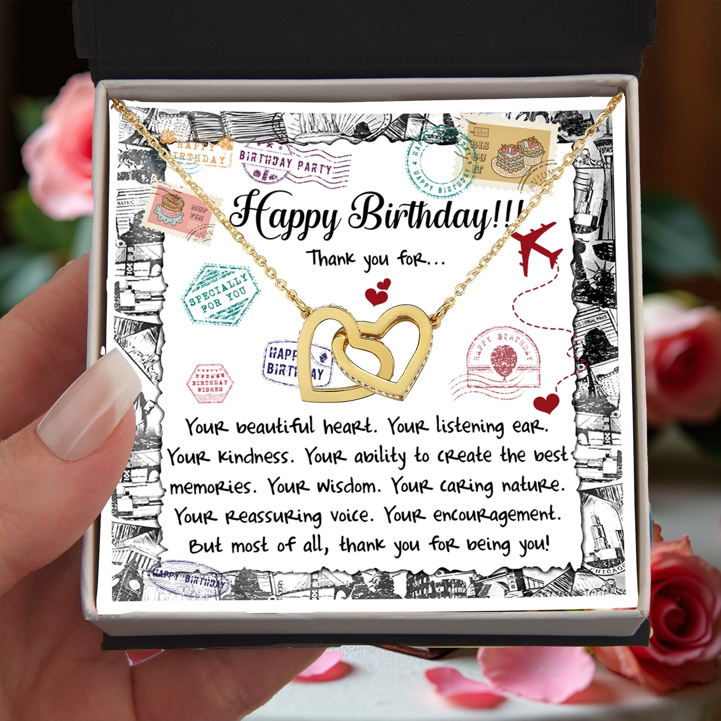 Includes a gift box with a heartfelt birthday message card