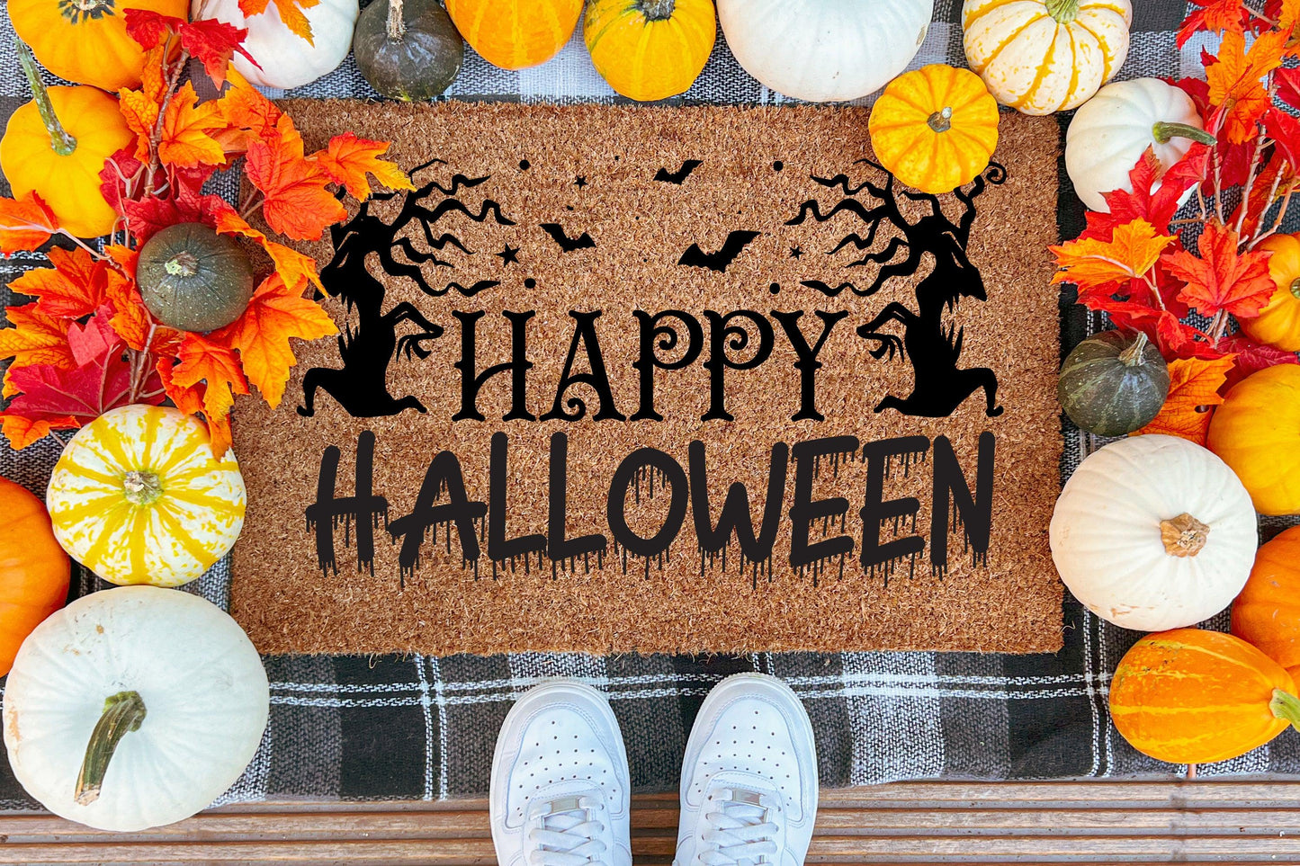 Happy Halloween Doormat – Spooky Outdoor Coir Mat for Fall Porch Décor