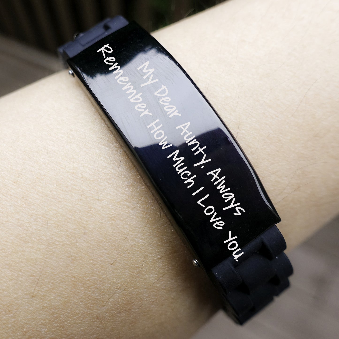 Heartfelt Gift from Me to My Dear Aunty, Glide lock Clasp Adjustable Valentine's Day Jewelry, My Dear Aunty, Always Remember How Much I Love You., Silver Black Stainless Steel Silicone Clasp