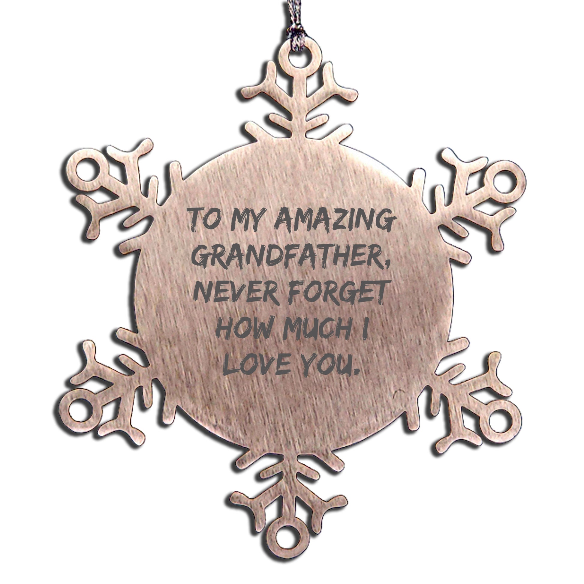Heartfelt Gifts for Grandfather - 'To My Amazing Grandfather' Snowflake Ornament, Premium Stainless Steel, Shatterproof, Christmas Unique Gift Ideas for Men