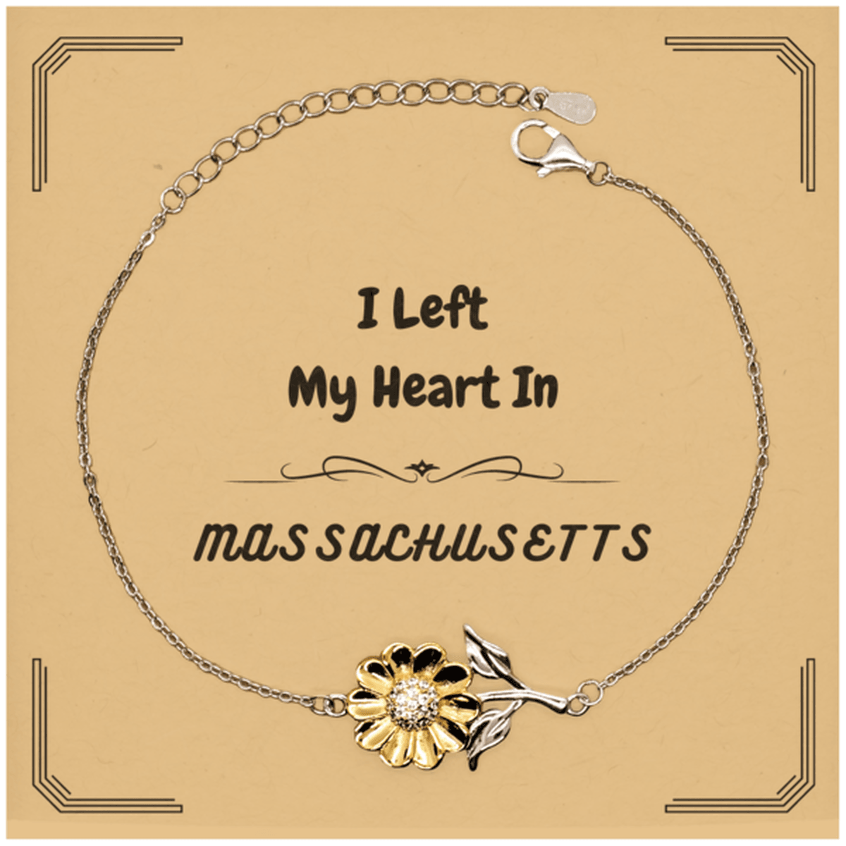 I Left My Heart In Massachusetts Gifts, Meaningful Massachusetts State for Friends, Men, Women. Sunflower Bracelet for Massachusetts People