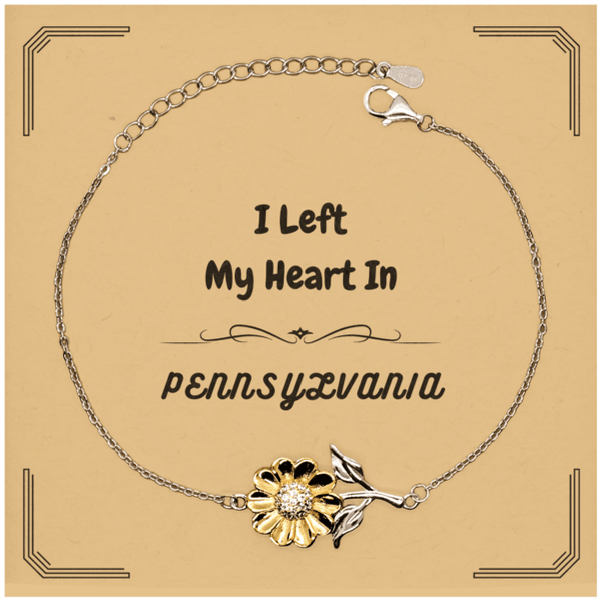 I Left My Heart In Pennsylvania Gifts, Meaningful Pennsylvania State for Friends, Men, Women. Sunflower Bracelet for Pennsylvania People