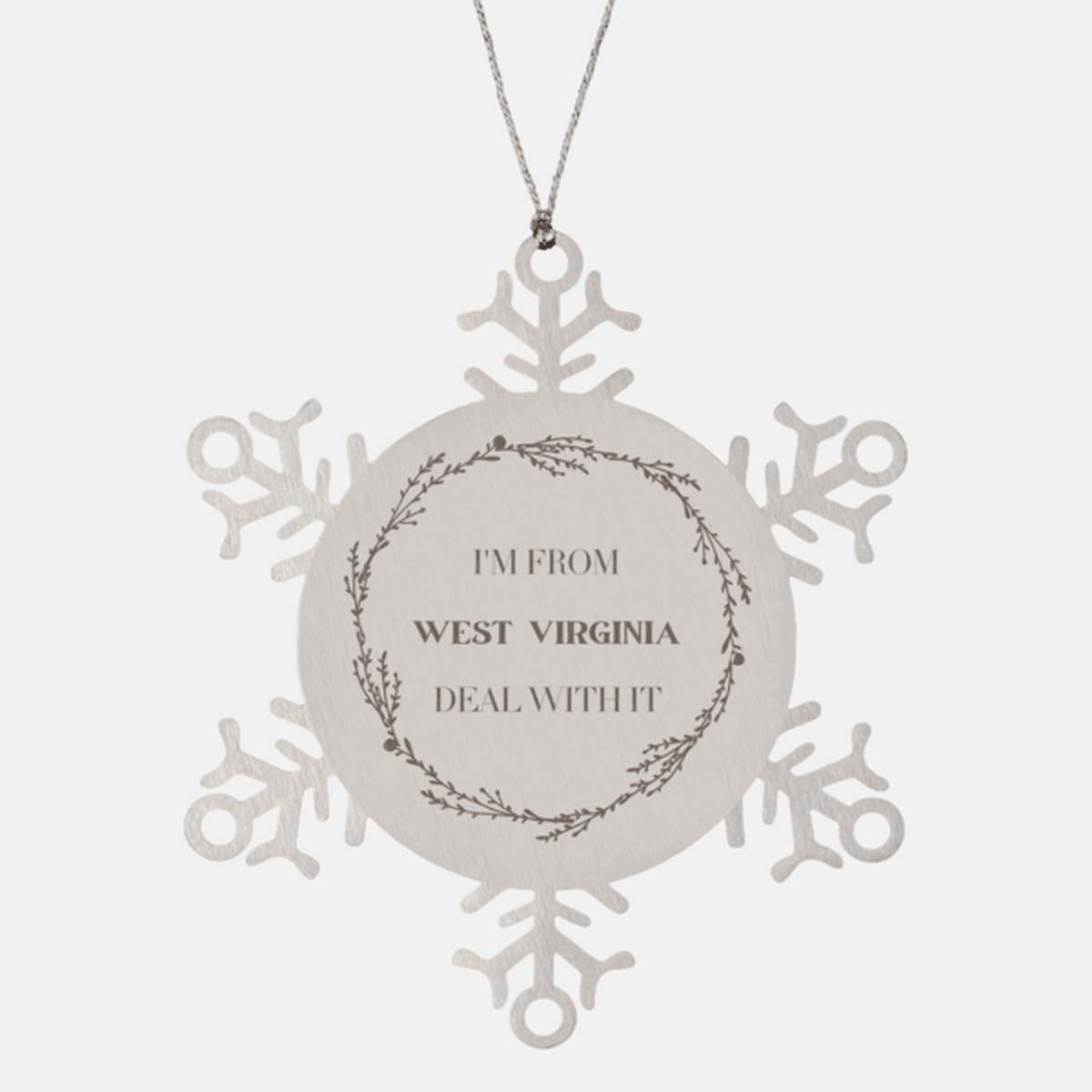 I'm from West Virginia, Deal with it, West Virginia Snowflake Ornament Gift Idea, Christmas Gifts