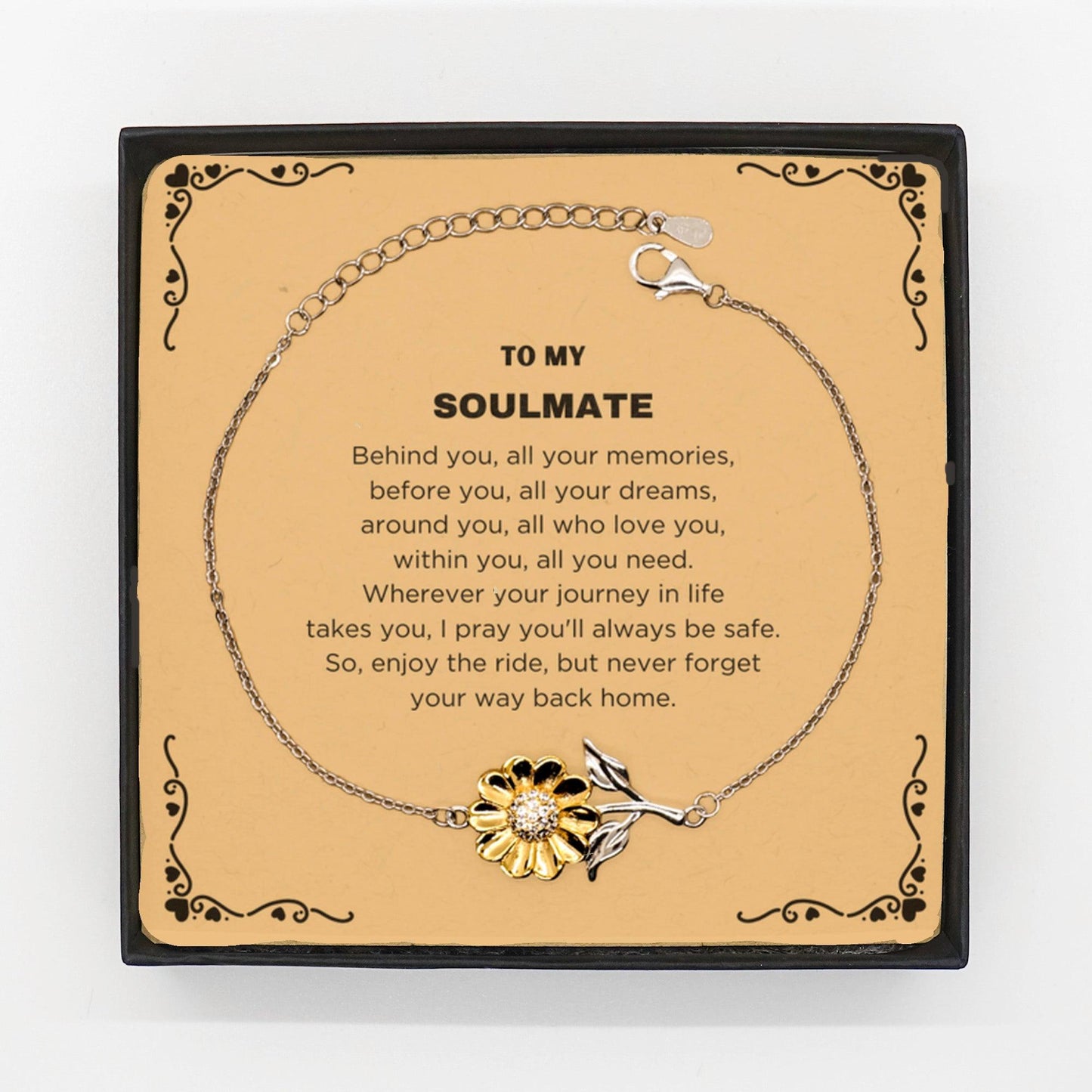 Inspirational Soulmate Sunflower Bracelet - Behind you, all your Memories, Before you, all your Dreams - Birthday, Christmas Holiday Gifts