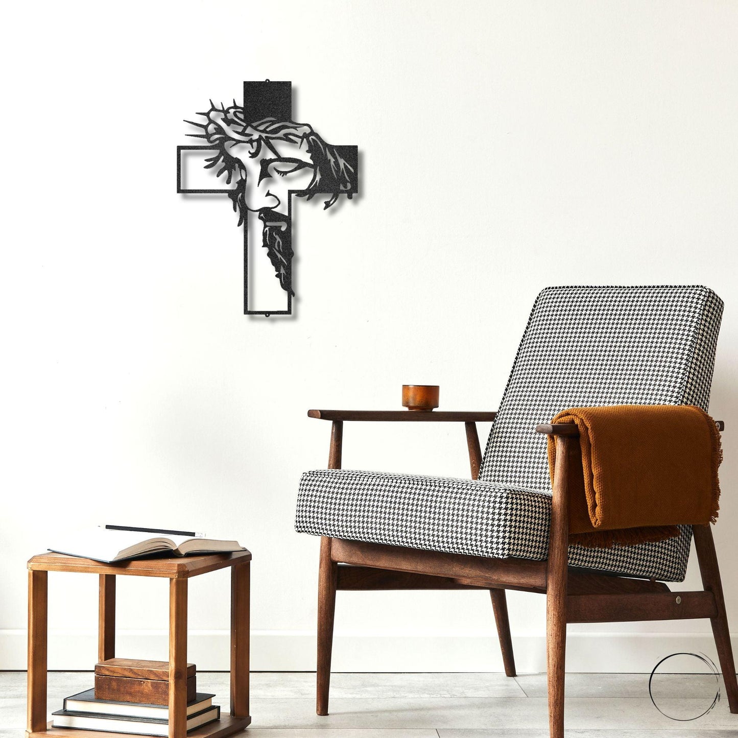 Its sleek black finish and sharp cutouts allow light and shadow to enhance the visual depth, while a pre-drilled hole at the top allows for easy wall mounting. Whether used as a daily reminder of faith or given as a heartfelt gift, this Christian wall art makes a bold and reverent statement.