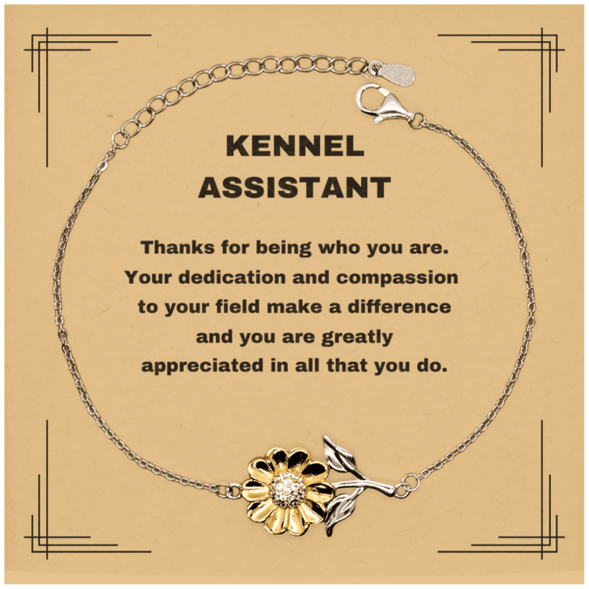 - PERFECT Kennel Assistant GIFT - Sunflower represents happiness, optimism, honesty, longevity, peace, admiration, and devotion. This beautiful Sunflower Bracelet is a premium quality gift for Kennel Assistant that's a perfect way to express your love.