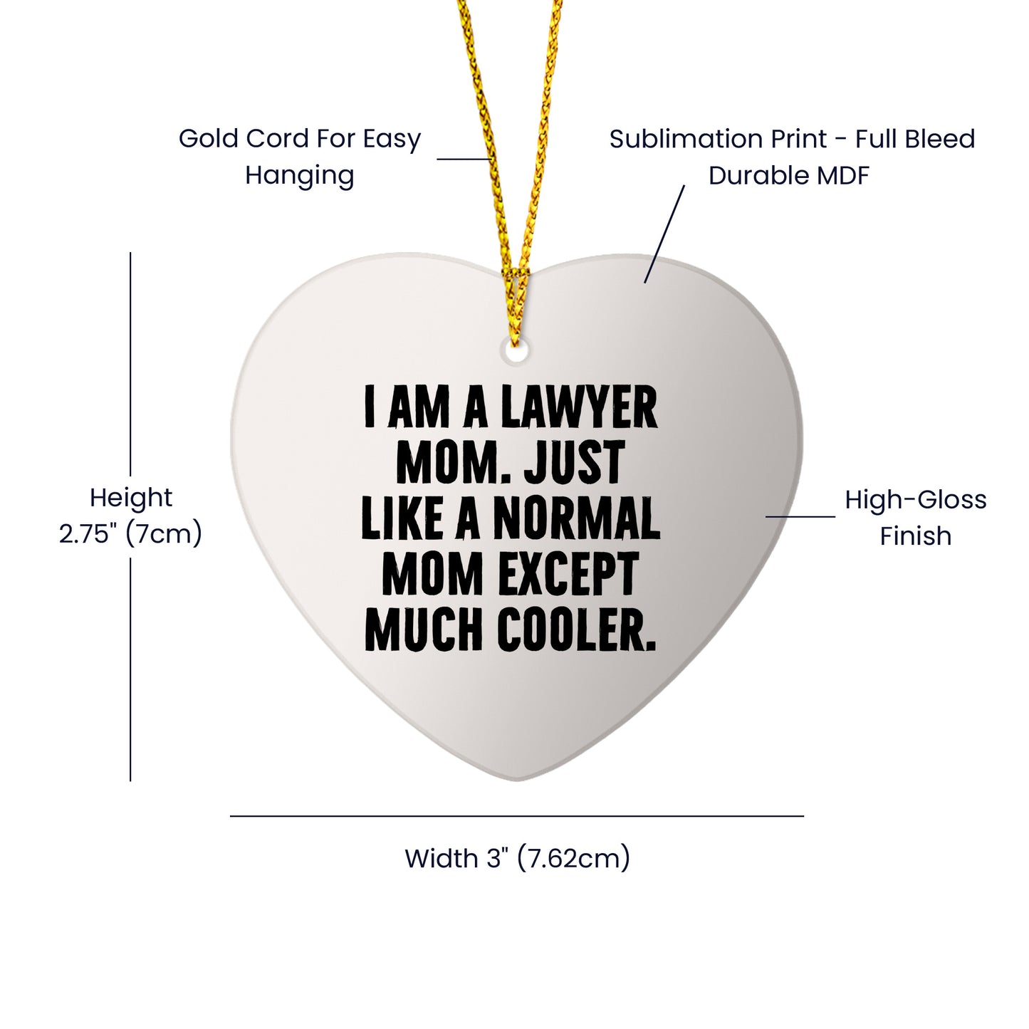 Lawyer Mom Heart Ornament, Funny Quote, Christmas Unique Gifts from Women to Lawyer Friends, Unique Presents for Men, Women, or Coworkers