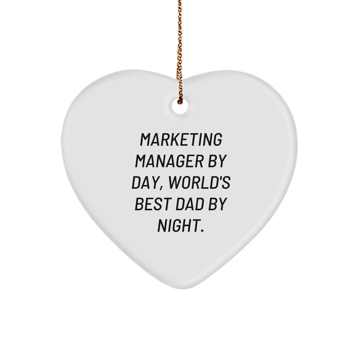 - Get your 'Marketing Manager By Day, World's Best Dad By Night.' heart ornament today and show your loved ones that you're not just a Marketing Manager, but also a superhero dad who's always ready to lend a helping hand
