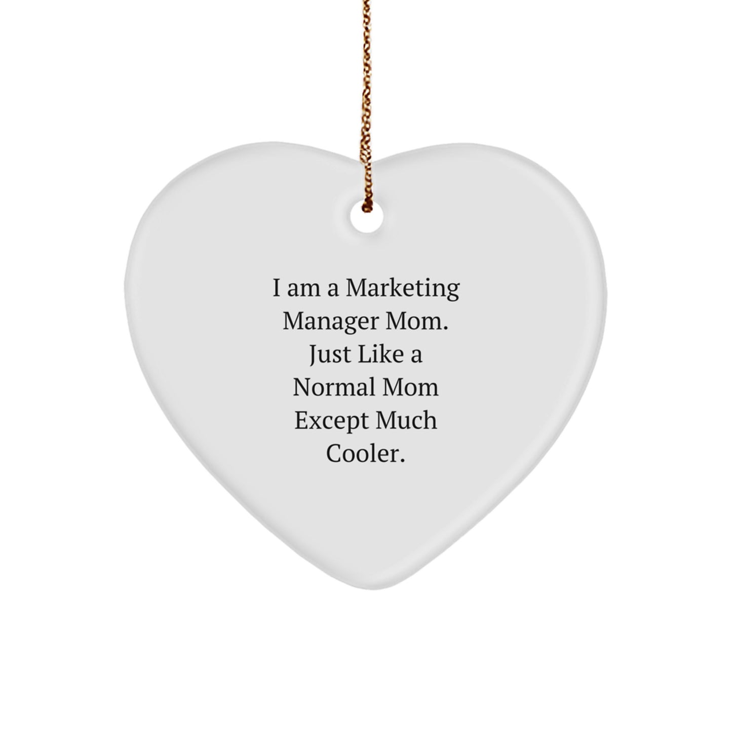 - Our Marketing Manager Mom Heart Ornament is the ideal gift for Marketing Manager friends and family. Its unique and thoughtful design is a great way to show your loved ones that you're thinking of them. Plus, its lightweight and resistant to breaking make it a great choice for households with children or pets.