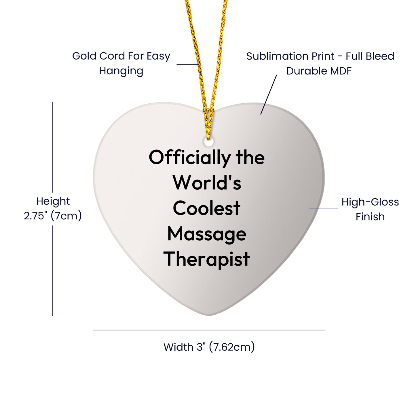 Looking for a unique gift for the massage therapist in your life? This funny heart ornament is a perfect way to show your appreciation for their hard work and dedication. Featuring the humorous quote "Officially The World's Coolest Massage Therapist," it adds a playful touch to a thoughtful gift. Made from durable MDF and high-gloss plastic, this ornament is lightweight and break-resistant, ideal for homes with kids or pets. The festive gold cord makes hanging a breeze, while the vibrant colors bring a cheerful pop to any space. Whether it's for a coworker, friend, or family member, this ornament is sure to make them smile. Celebrate the holiday season and brighten their day with this fun and heartwarming gift!