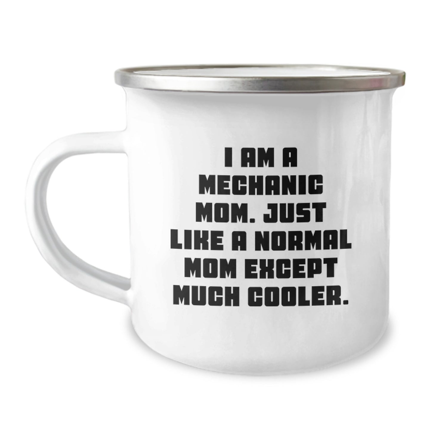 - As a 'I Am A Mechanic Mom. Just Like A Normal Mom Except Much Cooler.' who loves camping, this stainless steel camping mug is perfect for me. With a 12 oz capacity, it's large enough to hold my favorite morning coffee or tea.