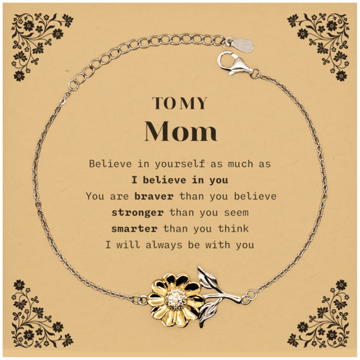 Mom Sunflower Bracelet Gifts, To My Mom You are braver than you believe, stronger than you seem, Inspirational Gifts For Mom Card, Birthday, Christmas Gifts For Mom Men Women