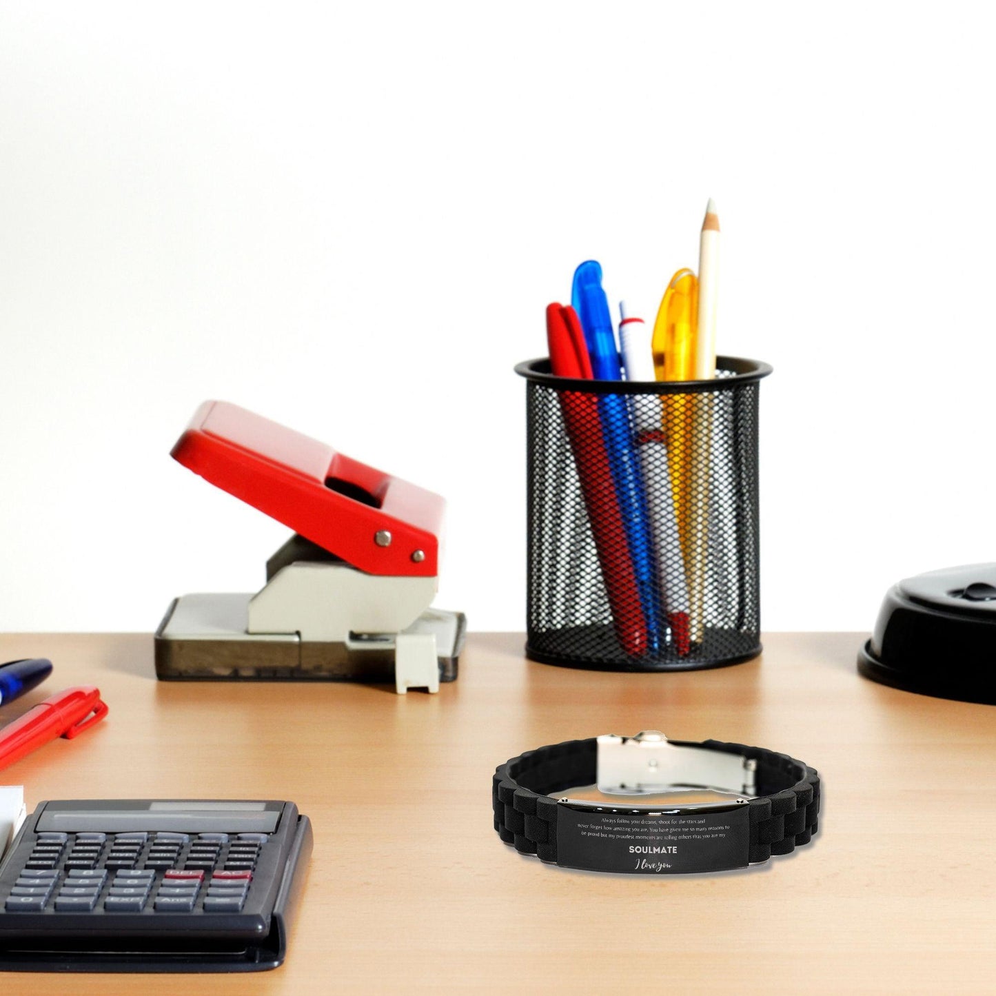 Motivational Soulmate Engraved Black Glidelock Clasp Bracelet - Always follow your dreams, never forget how amazing you are- Birthday, Christmas Holiday Gifts