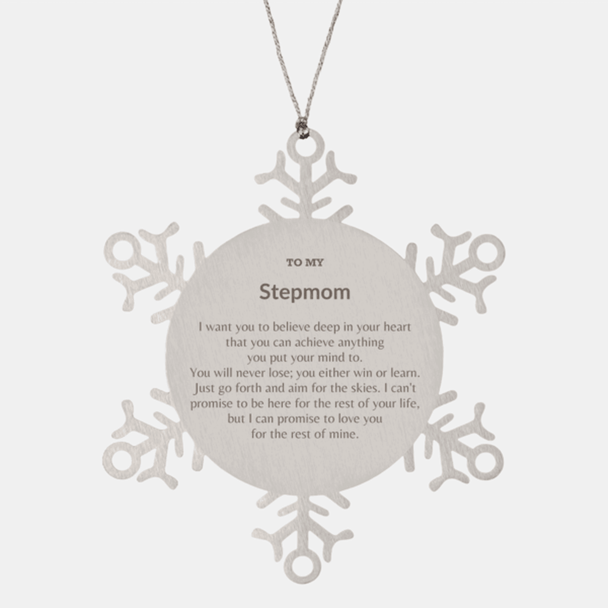 - Stepmom CHRISTMAS ORNAMENT - This Engraved Snowflake Christmas Ornament with your thoughts and feelings is a perfect Christmas gift for anyone you love.