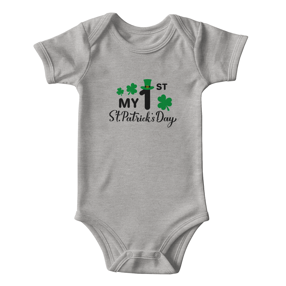 Make your baby's first St. Patrick's Day extra special with this adorable holiday bodysuit! Designed with a cute “My 1st St. Patrick’s Day” print, complete with shamrocks and a leprechaun hat, this festive onesie is perfect for holiday celebrations, family photos, and lucky memories.