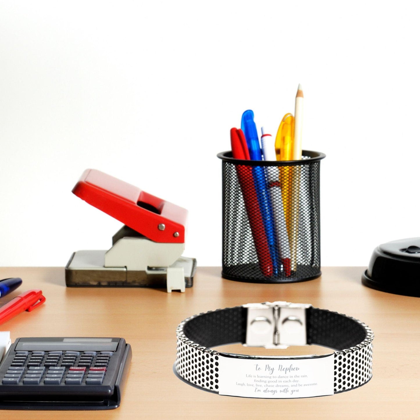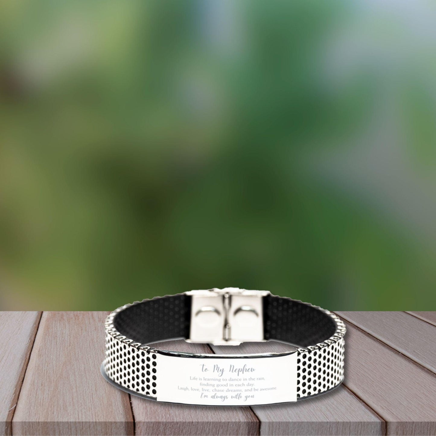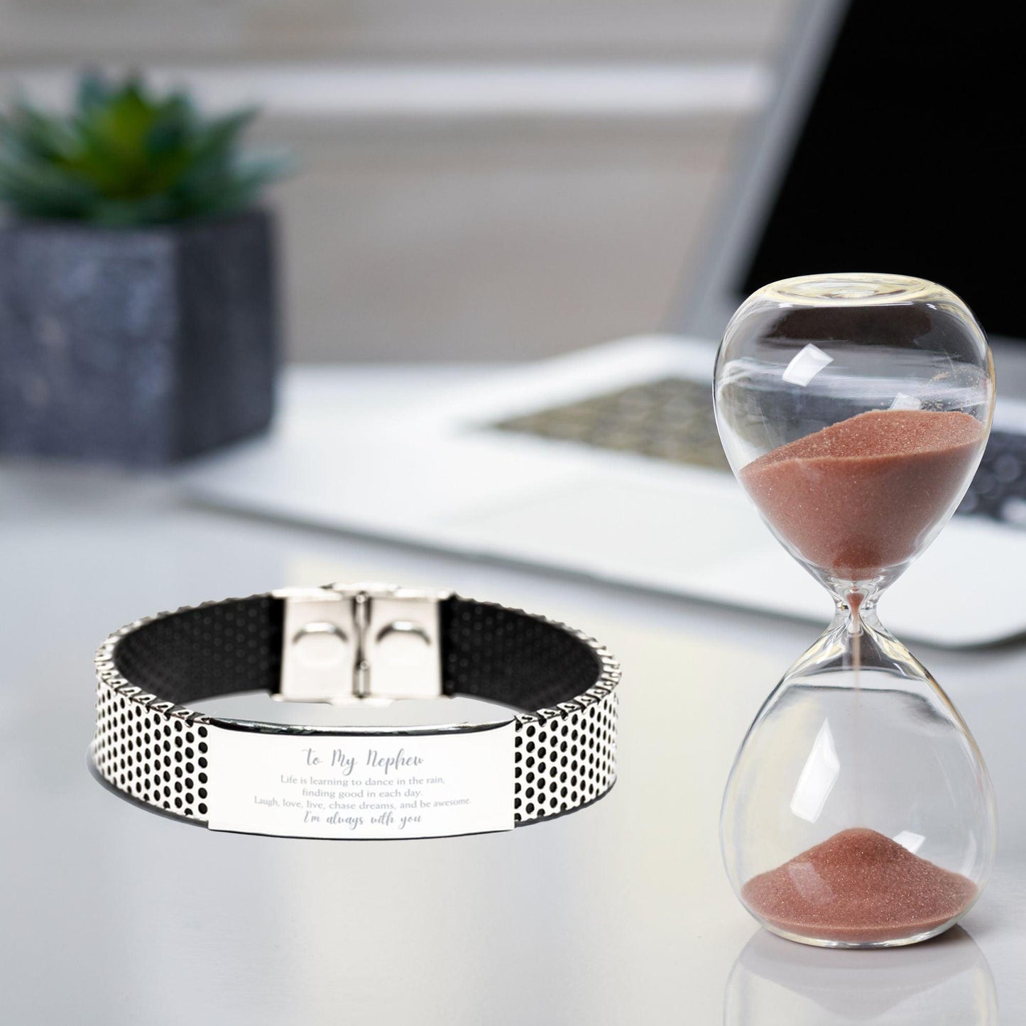 Nephew Stainless Steel Engraved Cuban Chain Bracelet, Birthday Christmas Gifts - Life is learning to dance in the rain, I'm always with you