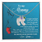 "To my Mommy, I wriggle and jiggle inside your tummy. I love you already, my beautiful mommy. I can't wait to stroke my hand across your cheek. You will watch me grow week after week. Not long now, Mommy, until you hold me close, Not long until we can touch nose to nose. Love, Bump"