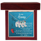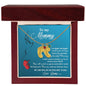 An enchanting gift for the new mom, our baby feet birthstone necklace is engraved with a name and has a birthstone and message from the bump,