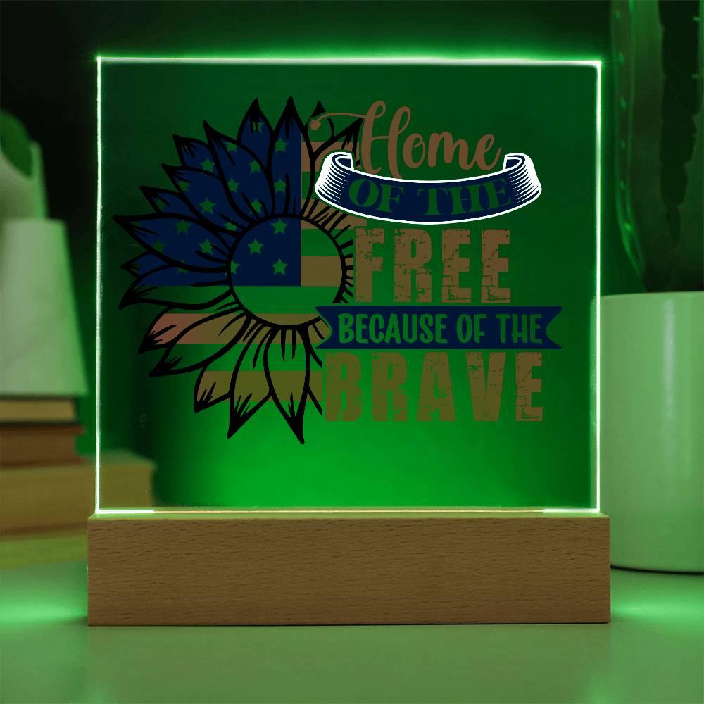 Patriotic Sunflower Home of the Free Because of the Brave Acrylic Plaque